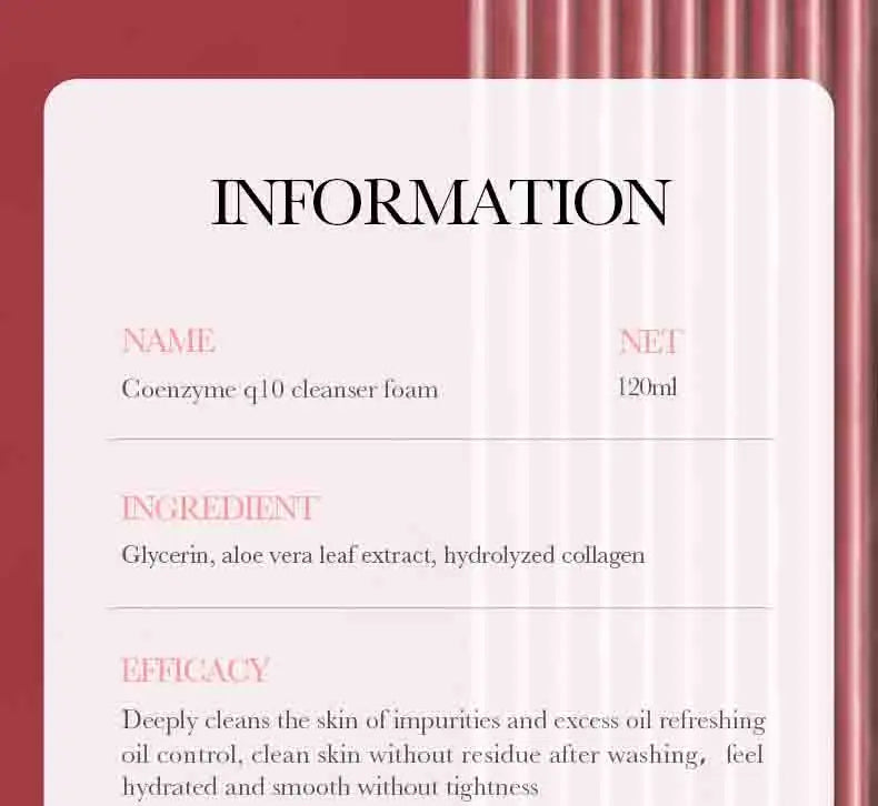 The SAODER Q10 Vitamin C Facial Cleanser is a gentle foaming face wash designed to cleanse, moisturize, and brighten your skin. Enriched with Vitamin C and Q10, it helps remove dirt, oil, and makeup residue while nourishing the skin and improving elasticity. Ideal for daily use, it leaves your face feeling refreshed, hydrated, and radiant.